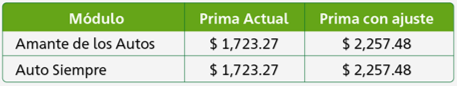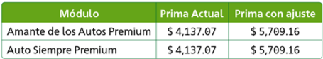 La cobertura de Auto Sustituto para el Módulo Auto Siempre Premium se modificará por un Auto Sustituto Convencional. Además, las tarifas para los costos de los Módulos Premium quedarán de la siguiente manera: