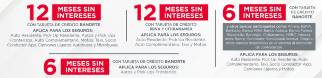 Desde el 1° de enero y hasta finales de año, Zúrich te trae la oportunidad para que tus asegurados contraten un seguro de autos o de hogar con pagos a 3 y 6 meses sin intereses. ¿Lo mejor? Es que aplica con las siguientes tarjetas: